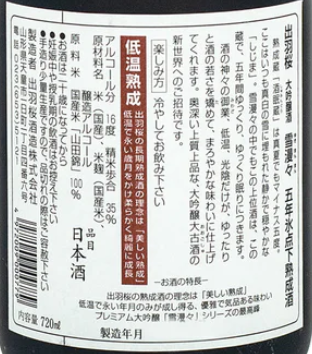 出羽桜 (出羽櫻) 雪漫々 大吟醸 五年氷点下熟成酒 720ml (禮盒裝)