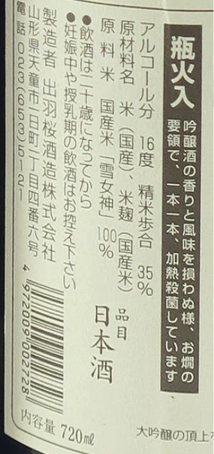 出羽桜 (出羽櫻) 純米吟醸 出羽燦々 720ml