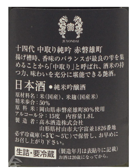 十四代 赤磐雄町 中取り 純米吟醸 生詰