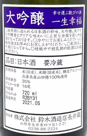 • 一生幸福 大吟釀 720ml