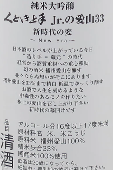 • くどき上手 Jr.の愛山33 純米大吟醸 生詰 720ml