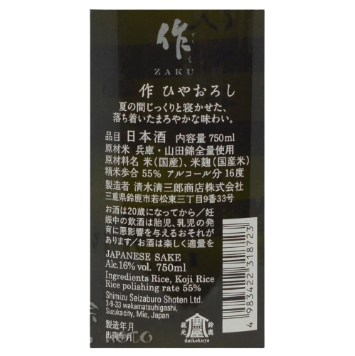 作 Premium 槐山一滴水 純米大吟醸 山田錦 750ml (禮盒裝)