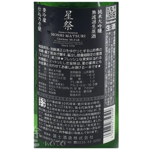 栄光冨士 (榮光富士) 星祭 純米大吟醸 無濾過 生原酒 720ml