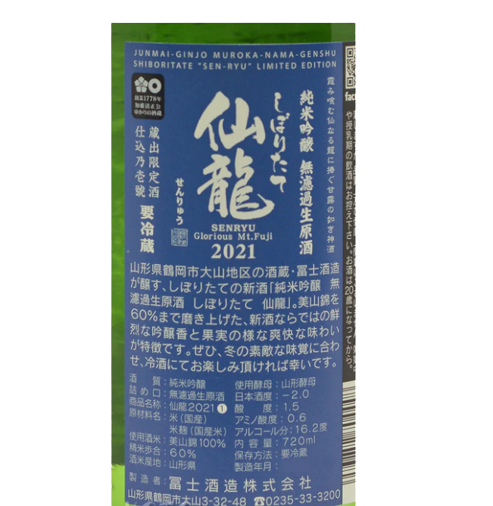 栄光冨士 (榮光富士) 仙龍 しぼりたて 純米吟醸 無濾過 生原酒 720ml