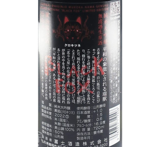 栄光冨士 (榮光富士) BLACK FOX 純米大吟醸 無濾過 生原酒 720ml
