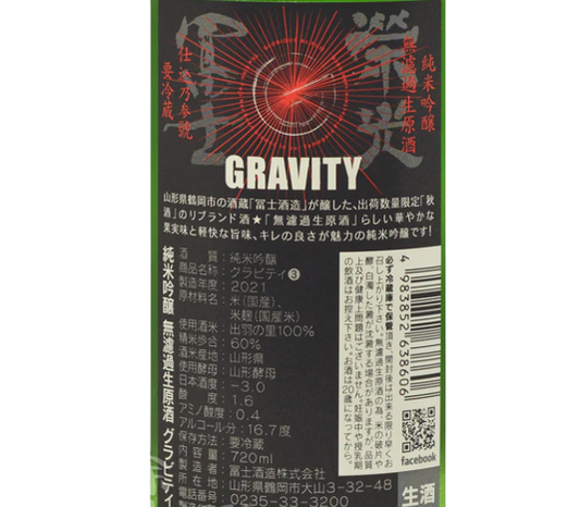 栄光冨士 (榮光富士) GRAVITY 純米吟醸 無濾過 生原酒 720ml