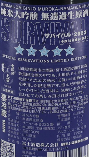 栄光冨士 (榮光富士) SURVIVAL 純米大吟醸 無濾過 生原酒 720ml